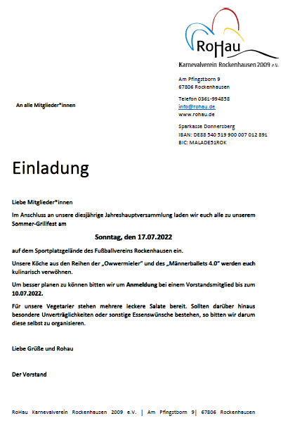 Liebe Mitglieder, Liebe Freunde des RoHau,